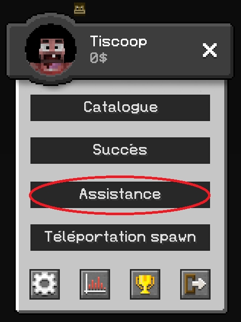 Une partie assistance est aussi disponible en jeu pour toutes les questions relatives aux questions de GamePlay. Elle est gérée par la modération du serveur.